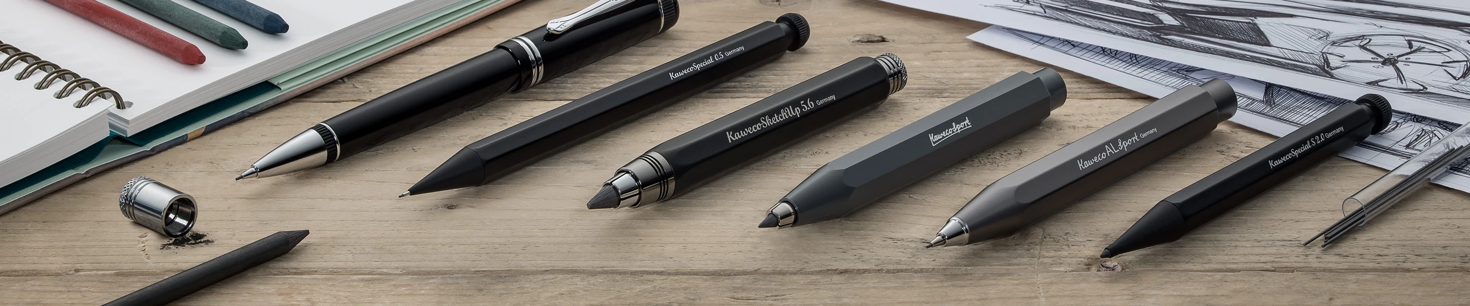 Wer wären wir, wenn wir in der Bleistiftstadt Nürnberg nur tintenbasierte Schreibgeräte produzieren würden? Seit Anfang des 20ten Jahrhunderts entwickelt Kaweco diverse Arten von mechanischen Graphitminen Stiften mit hochwertiger Mechanik.