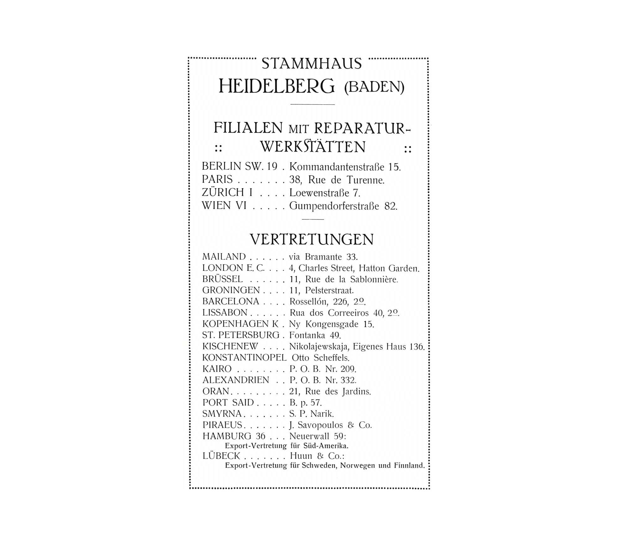 Gründung der Heidelberger Federhalterfabrik durch die Herren Luce und Enßlen. Allerdings wird der Name erst 1889 im Heidelberger Adressbuch erwähnt. Es werden Federhalter aus Holz produziert und Füllhalter, sowie Goldfedern von Morton aus New York importiert.
